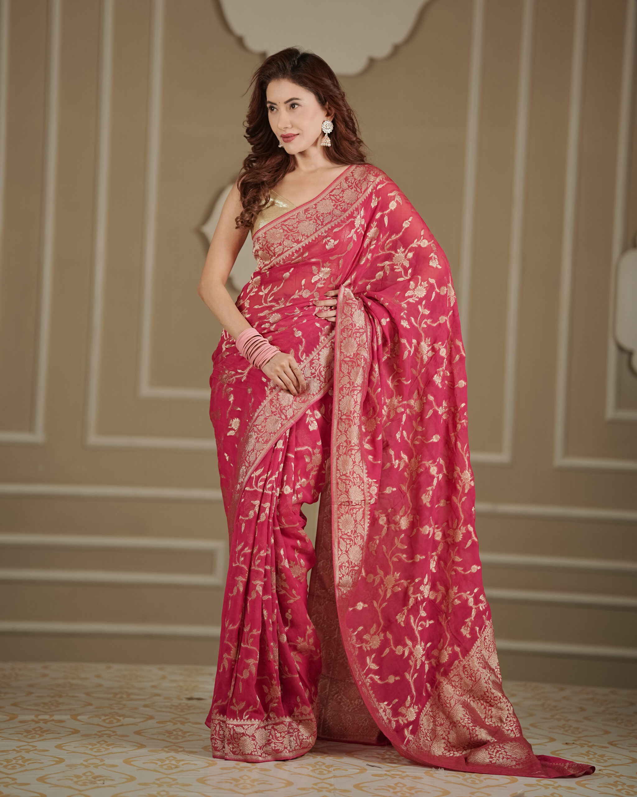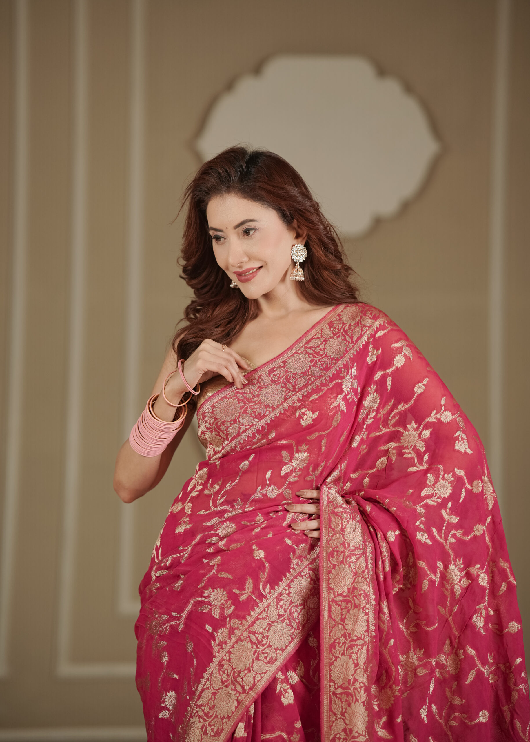 1 Khaddi Georgette Saree + 1 Unstitched Blouse Piece