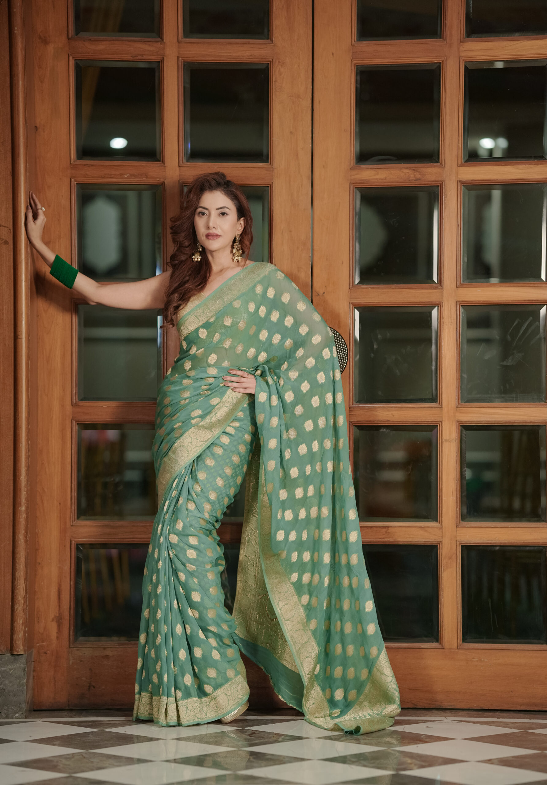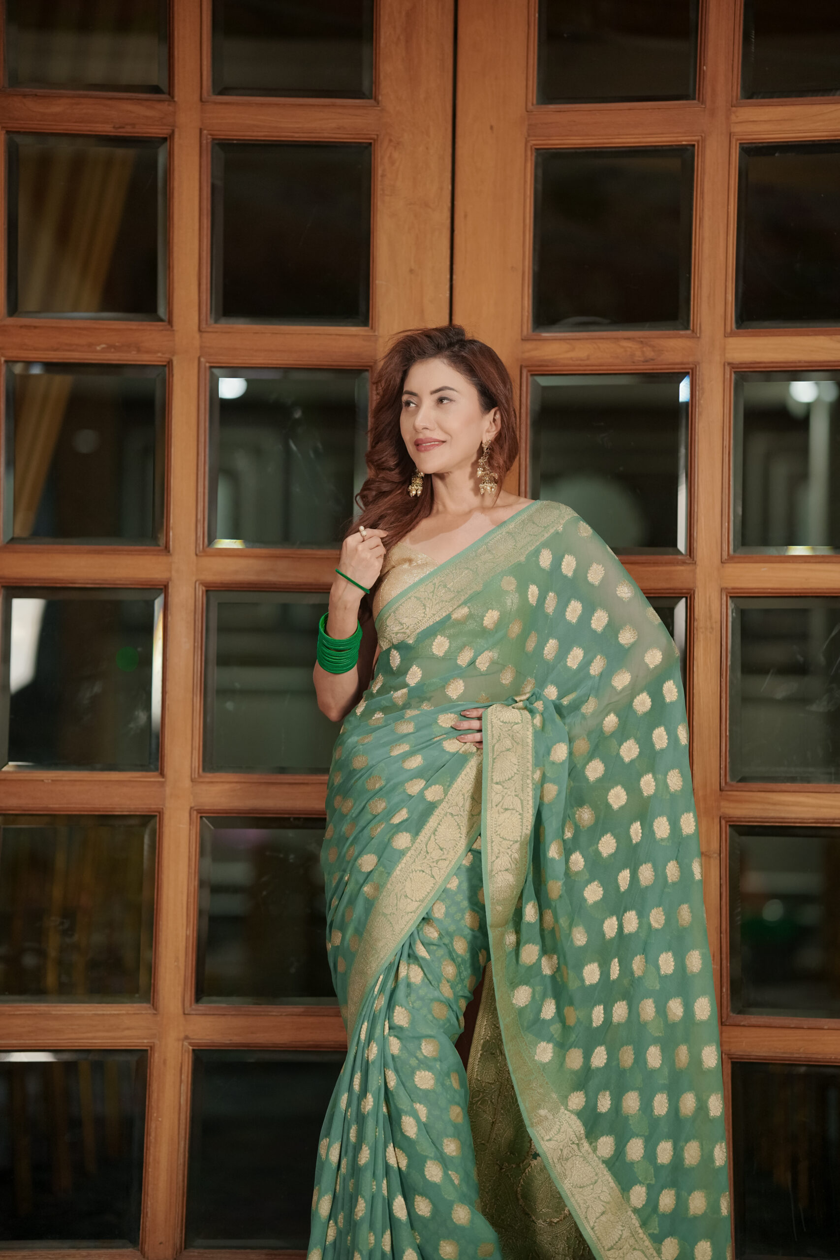 Elevate your ethnic wardrobe with our exquisite Khaddi Georgette Saree collection, where heritage weaving meets contemporary elegance. Made from fine Khaddi Georgette, these sarees are soft, flowy, and perfect for festive wear, weddings, and elegant soirées.